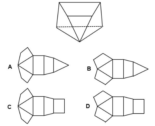 53.下邊是給定的立體圖形,以下哪一項(xiàng)是該立體圖形的外表面展開圖( )