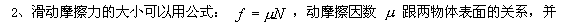 3、兩個(gè)物體間的滑動(dòng)摩擦力的大小跟這兩個(gè)物體接觸面間的壓力大小成正比.