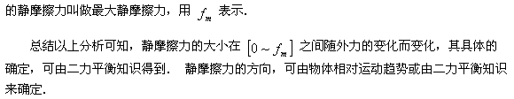 2、兩個(gè)物體相互接觸,當(dāng)有相對(duì)滑動(dòng)的趨勢(shì),但又保持相對(duì)靜止?fàn)顟B(tài)時(shí),在它們接觸面上出現(xiàn)的阻礙相對(duì)滑動(dòng)的作用力