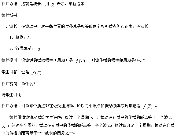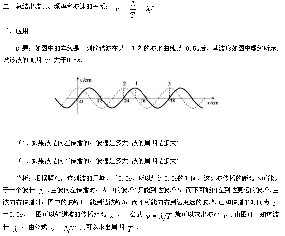 教學重點:波長、頻率和波速之間的關系
