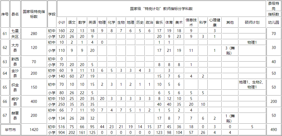 2. 大方縣2019年農(nóng)村義務(wù)階段學(xué)校教師特設(shè)崗位計(jì)劃表