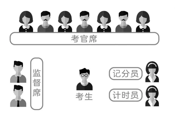結(jié)構(gòu)化面試考場(chǎng)一般會(huì)有5~9名考官,另外還有計(jì)時(shí)員、記分員、監(jiān)督員等。