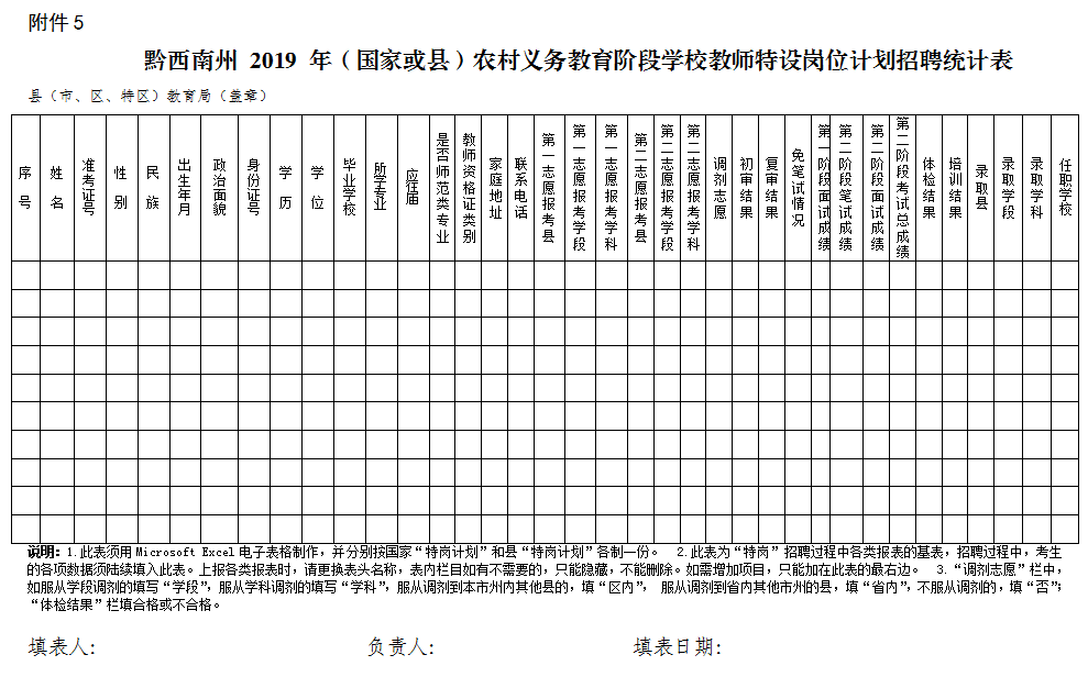 縣教育局于8月16日前將第一階段和第二階段匯總審核后的錄取人員名單(含加蓋公章的文本、Excel電子表格,樣式見附件5)報州局師訓(xùn)科,州審核匯總后報省教育廳教師工作處。