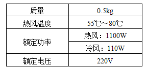 B.在熱風狀態(tài)下工作6分鐘消耗電能0.66度