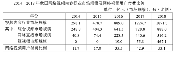 ?、?014—2018年,我國網(wǎng)絡(luò)視頻用戶付費(fèi)比例增長最快的年份是2016年