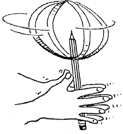(7)用雙手夾著鉛筆搓動(dòng),開始慢一些,后逐漸加快速度,使得紙條旋轉(zhuǎn)起來。